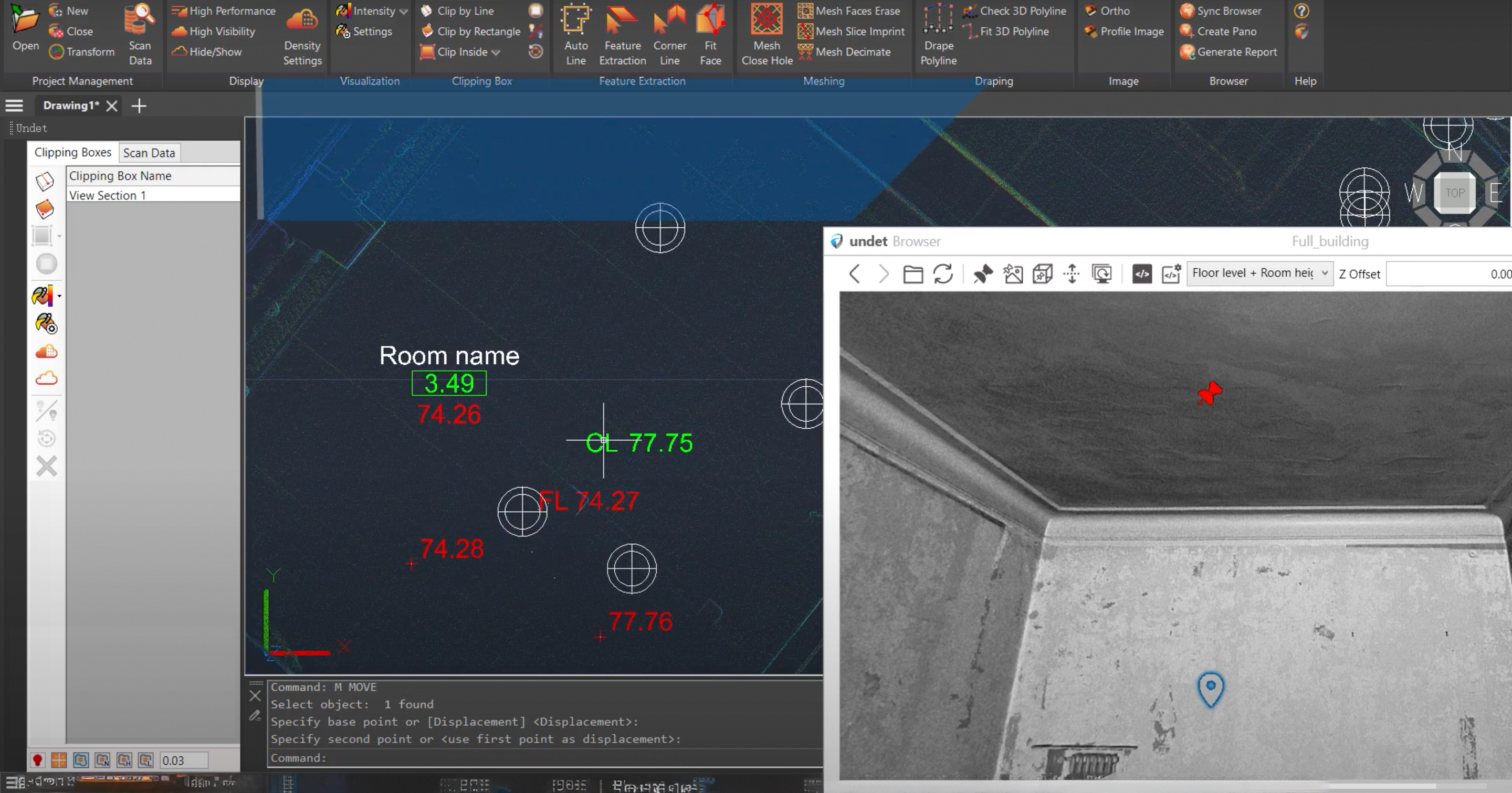 - Instrument Auto-Multi Line pentru extragerea rapidă a liniilor 2D cu un singur clic pentru a obține cea mai bună acuratețe de potrivire cu secțiunea reală a norului de puncte.