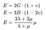 W przypadku materiału izotropowego moduł Younga powiązany jest z innymi stałymi materiałowymi:
