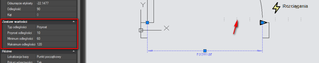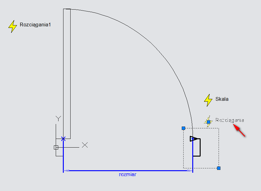 będziemy rozciągali rozmiar, szerokość drzwi w świetle oraz długość ramienia drzwi w pionie.