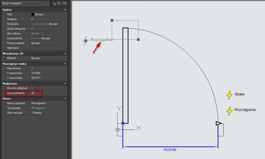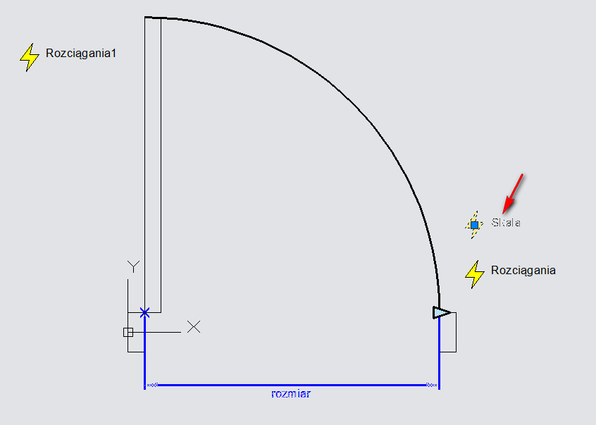 Pozostaje już tylko Operacja skalowania łuku dodana do naszego Parametru