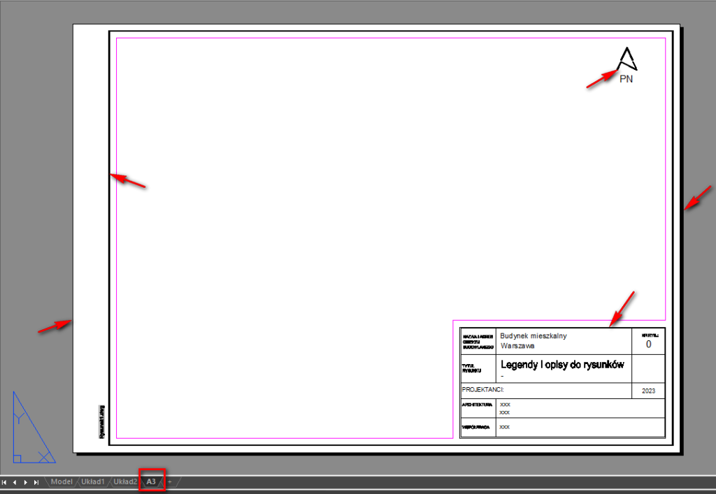 Dzięki tej operacji zostaje dodana dodatkowa karta Układu z szablonu (A3) ze wszystkim wcześniej