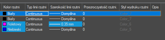 natomiast w Przestrzeni Papieru w danej Rzutni przyjmą kolor fioletowy i grubość linii 0,35 mm.