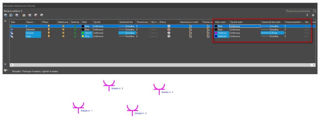Teraz w Menadżerze Właściwości Warstw powinna pojawić się kolumna KOLOR RZUTNI,