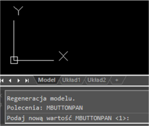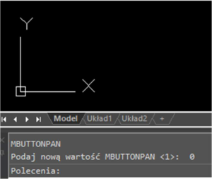 Wpisując w linii komend (lub w polu przy kursorze myszy) polecenie MBUTTONPAN (ang. środkowy — middle, przycisk — button, przesuwać — pan), uruchomisz zmienną systemową, której zmiana wartości ze standardowej <1>  na <0> spowoduje, że zamiast domyślnej funkcji środkowego przycisku myszy (ŚPM) — przesuwania, będziecie mogli po kliknięciu ŚPM ujrzeć menu, które możecie przywołać również komendą SHIFT + prawy przycisk myszy (PPM).