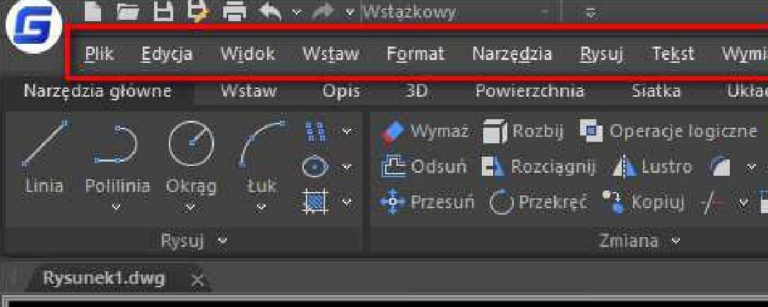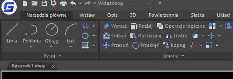 Teraz masz hybrydowy wygląd programu dający Ci dostęp do wszystkich opcji aplikacji zarówno tych nowych jak i starych – klasycznych. Taki właśnie dostęp przyda się bardzo do poznania ciekawych funkcji GstarCAD w kolejnych tutorialach.