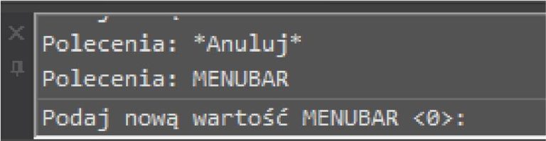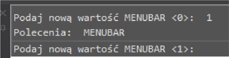 Aby przywrócić domyślne ustawienia wystarczy ponownie wpisać MENUBAR zatwierdzić Enterem a następnie wprowadzić wartość <0>.