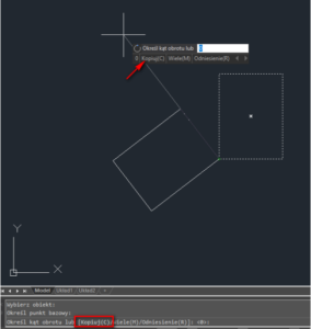 Po wskazaniu obiektu do PRZEKRĘCENIA i wybraniu punktu bazowego teraz należy wybrać opcję