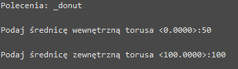 Pentru a desena inelul, acordați atenție liniei de comandă, care ne informează că trebuie să furnizăm mai întâi valoarea diametrului interior al inelului și apoi valoarea diametrului exterior. După asta ne putem bucura acum de Inelul nostru.