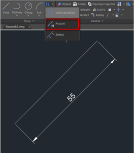 Wskaż obiekt do podziału a po podaniu długości segmentu …