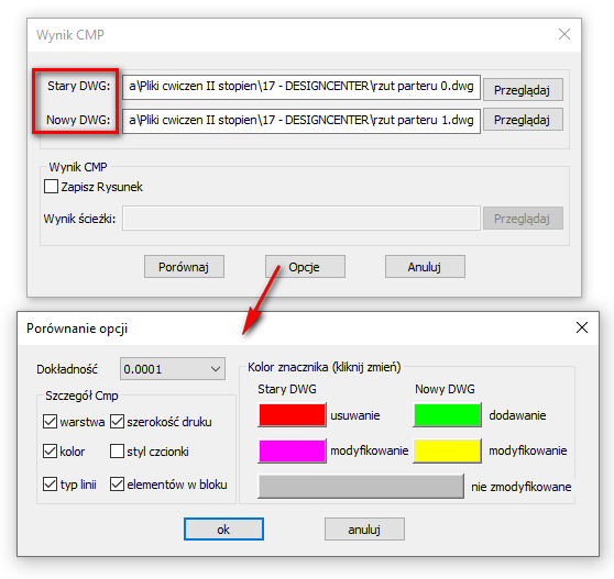ustawiamy ścieżki do „Starego DWG”, oraz do „Nowego DWG”.