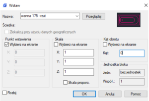 Po zatwierdzeniu Enterem zmiany zostają zapisane i w oknie Wstaw – blok wanny