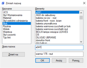 Okno to daje nam możliwość zmiany nazw: UCSów, , Stylom Wymiarowania, Materiałom, Stylom