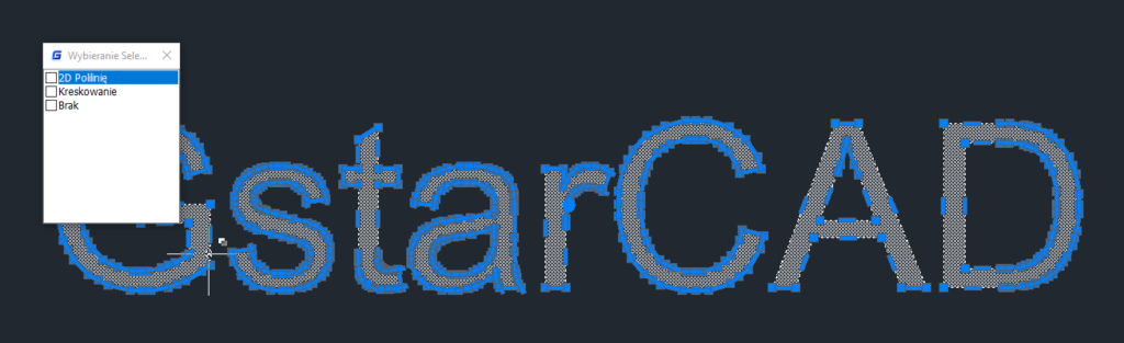 Tekst zostaje rozbity na linie, polilinie oraz kreskowanie.