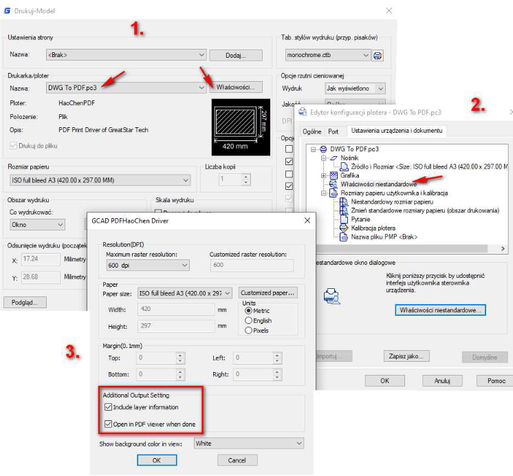 … możesz w GstarCAD tak ustawić opcje drukarki, aby po wydrukowaniu pliku CAD do PDF przy