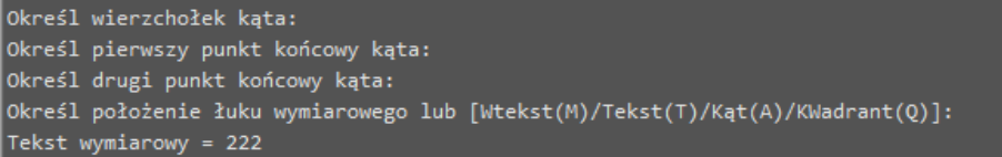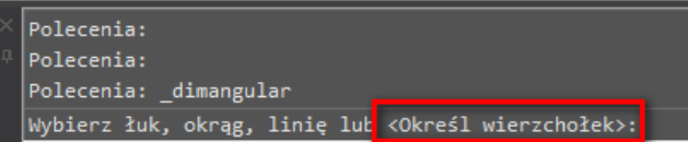 Po użyciu ikony wymiaru kątowego spójrz na linię poleceń i wciśnij Enter wybierając w ten sposób